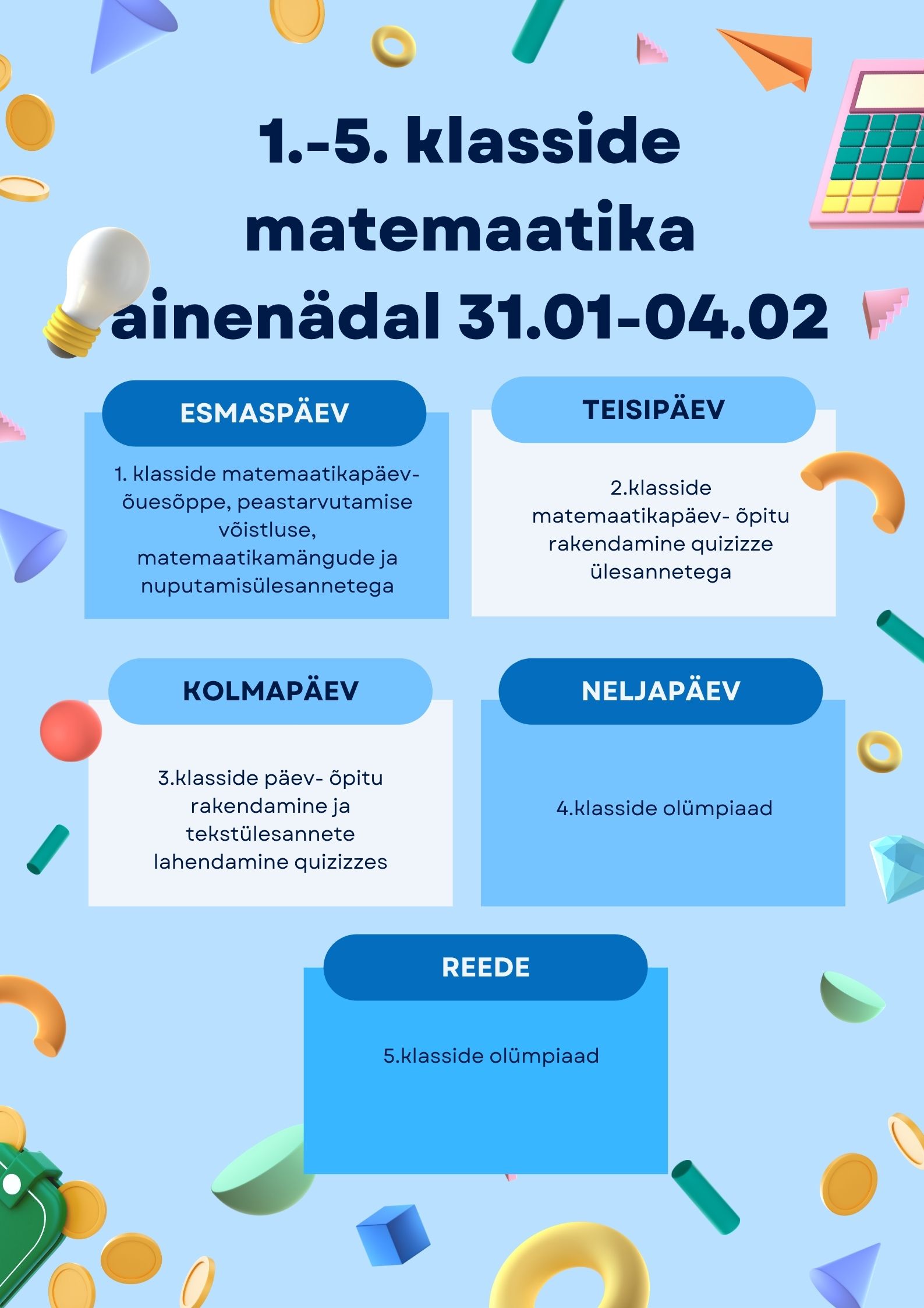 1.-5. klasside matemaatika ainenädalast