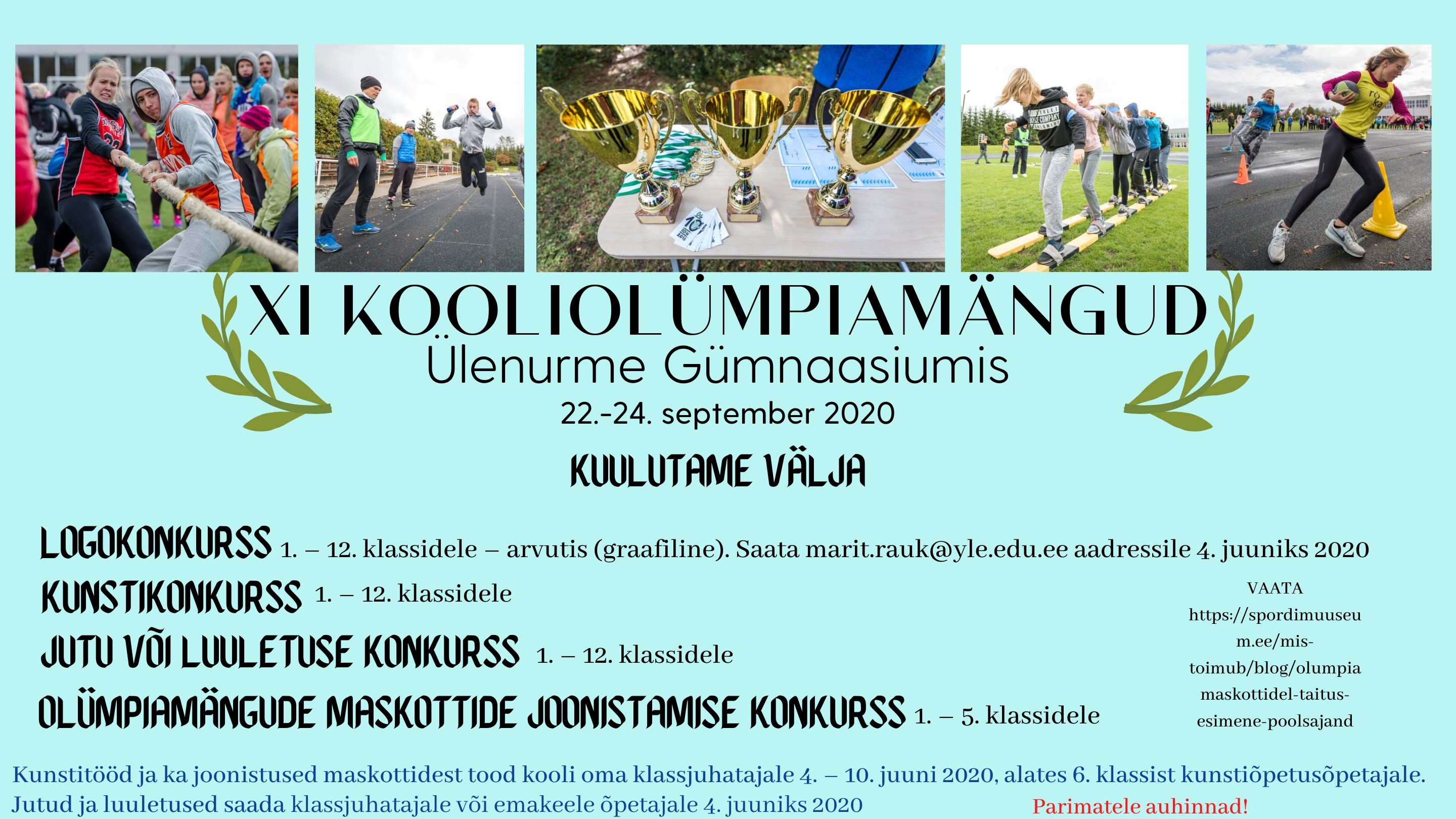 Seoses Covid-19 levikuga Eestis toimuvad Ülenurme Gümnaasiumi kooliolümpiamängud september 2021.