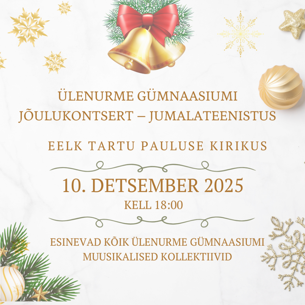 Ülenurme Gümnaasiumi Jumalateenistus-jõulukontsert Pauluse Kirikus 10. detsembril